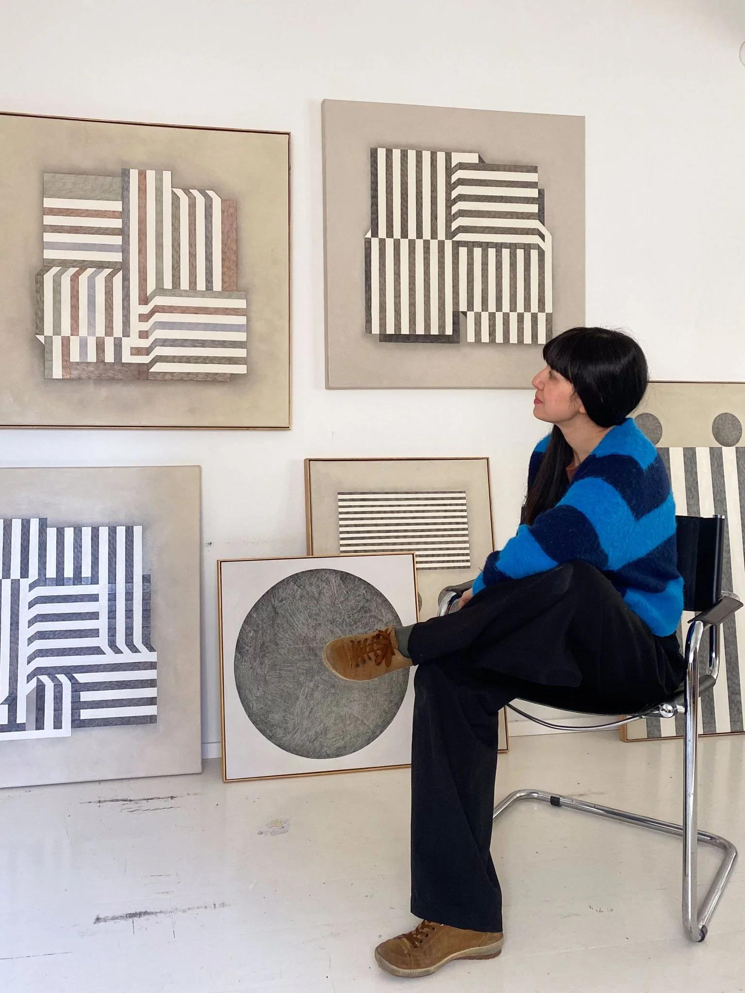 At the core of her work is the gradient, understood not only as a visual device but as a way of approaching change. Rather than abrupt shifts, her surfaces move slowly from one tone to another, allowing transformation to unfold in measured steps. These transitions create spaces where difference is experienced through accumulation, reflecting a sensitivity to subtle variation.